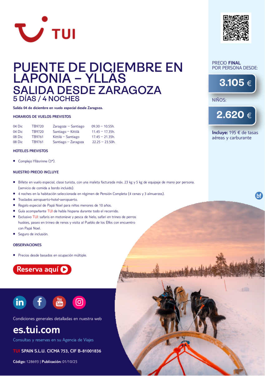 Laponia. Puente de diciembre en Ylläs. 5 días / 4 noches. 04 DIC desde ZAZ desde 3.105 €