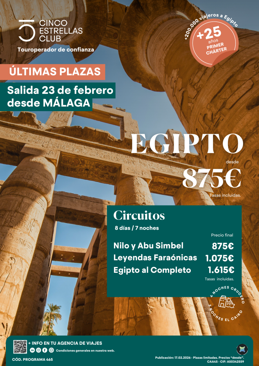 Súper Oferta Últ. Plazas Egipto 8d/7ns dsd 875€ sal. 23 de febrero desde Málaga Reserva ya!!!